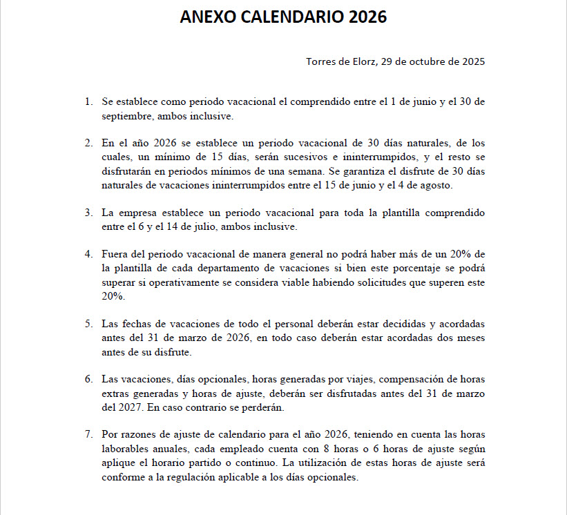 La Sección Sindical ELA no firmará el calendario 2026 debido al bloqueo en la negociación del Pacto de Empresa impuesto por la Dirección de la Empresa.