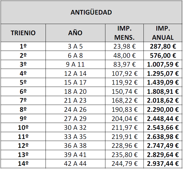 - Las cantidades brutas de la tabla se corresponden con el Salario Base x 14.